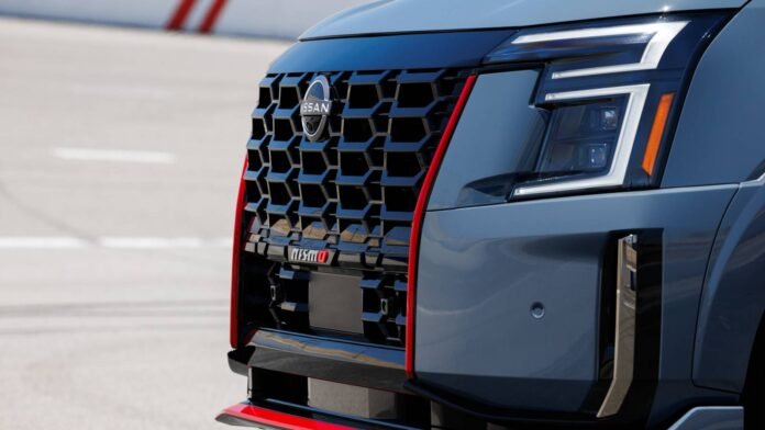 Sob o capô do 2026 Nismo Armada está o VR35DDTT biturbo V-6 de 3,5 litros da marca, produzindo 460 cavalos de potência e 516 libras-pés de torque quando funcionando com combustível premium. Este é um aumento de 35 cavalos de potência em relação ao Armada padrão, que a divisão de desempenho consegue aplicando mapeamento especializado do motor e ajuste fino das folgas das válvulas. Nenhuma alteração é feita na transmissão automática de nove velocidades.