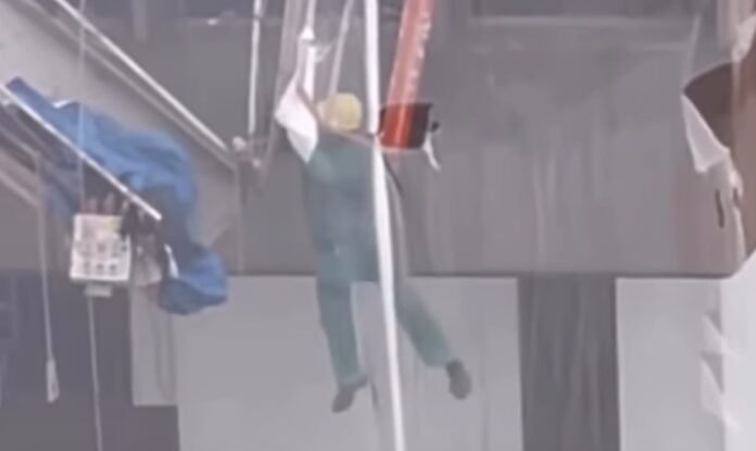 Andaime despenca e operário fica pendurado na fachada de prédio em obra na Barra da Tijuca