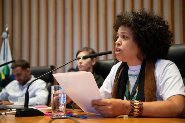 Por sua vez, a representante dos familiares custodiados do sistema prisional do DF, Bruna Oliveira, garantiu que não é fácil participar. “A gente realmente tem muito receio, porém está aqui com todo respeito reivindicando direitos. Falo como esposa de um homem que cumpre pena, mas também como cidadã. A justiça precisa caminhar lado a lado com a dignidade. Todos os dias familiares recebem relatos de que os presos recebem marmitas com alimentos insuficientes ou impróprios para o consumo humano. Isso não é descuido, é violação de um direito básico. Não se trata de luxo, é o mínimo necessário para garantir a sobrevivência com dignidade. Em muitos casos o preso só é levado ao hospital quando já está em estado crítico, isso é uma forma silenciosa de letalidade. O Estado não está fornecendo os produtos básicos de higiene. Quando o preso é privado até de se cuidar, o Estado está dizendo que ele não é mais humano. Isso nós não podemos aceitar”, exaltou Bruna.