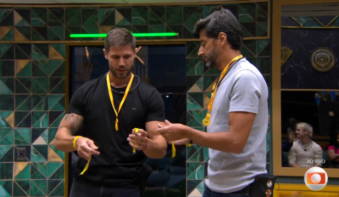 Jonas Sulzbach e Alberto Cowboy venceram a oitava prova do líder do “BBB 26”, depois de resistirem mais de 14 horas. A disputa acabou depois que Leandro Boneco e Breno foram desclassificados. Depois que Tadeu Schmidt anunciou na noite desta sexta-feira (6), o modelo comemorou a quarta vez que conquistou a liderança.