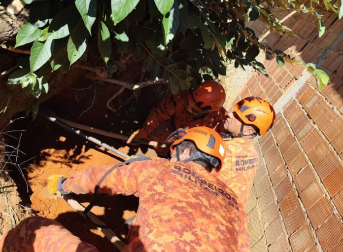 Uma cadela cega foi resgatada junto aos seus sete filhotes pelo Corpo de Bombeiros neste domingo. Os animais estavam dentro de um buraco, num barranco, no bairro Retiro, em Petrópolis, na Região Serrana do Rio. Nicole, como a fêmea é chamada por tutores, foi a primeira a ser encontrada. Ela estava suja de terra e assustada.