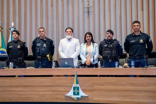 Ao final da solenidade, foram entregues moções de louvor aos presentes. O deputado Jorge Vianna também registrou uma moção de louvor em memória do policial do 27º BPM Yago Monteiro Fidelis, que faleceu em serviço em 2024.