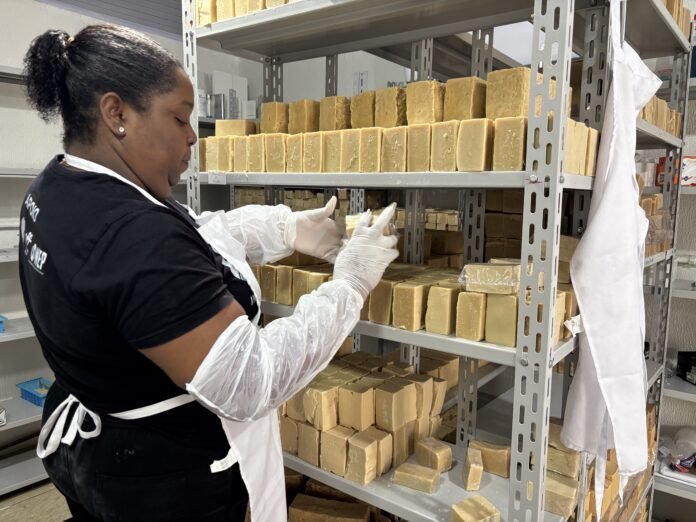 Uma solução desenvolvida pela EcoFábrica Omìayê, situada na Mangueira, vai desfilar neste carnaval. O ecosabão Omi produzido na unidade será usado em cozinhas e banheiros do Camarote King, na Marquês de Sapucaí, com a proposta de tratar o esgoto em tempo real. Como? Criando um sistema de saneamento circular baseado em biorremediação, ou seja, com base num modelo que trata o esgoto com micro-organismos e impede o descarte irregular de óleo.