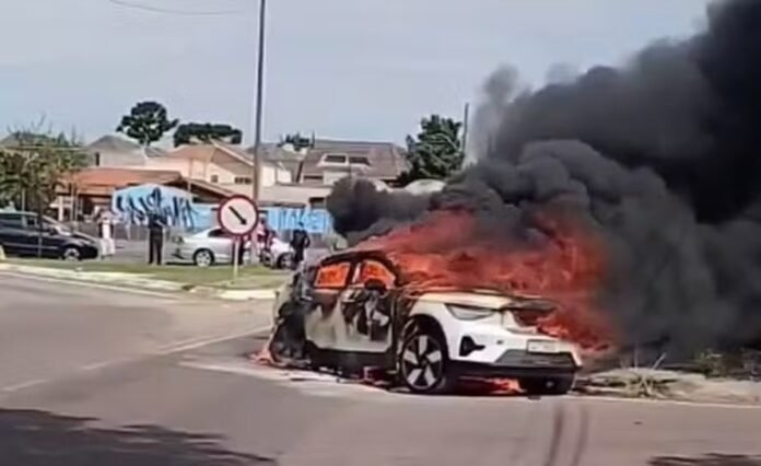 Um carro elétrico da Volvo pegou fogo na manhã de terça-feira, em Curitiba, e ficou destruído pelas chamas. O incidente ocorreu na Rua Niterói, no bairro Cajuru, próximo ao acesso à BR-277. O motorista conseguiu deixar o veículo após notar fumaça e não houve feridos. A fabricante informou que abriu investigação interna para apurar as causas do caso.