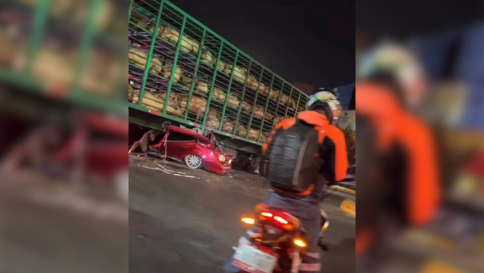 O acidente aconteceu no último domingo (1/3), na região de Texcoco, a cerca de 50 quilômetros da capital do país. De acordo com testemunhas, o acidente foi causado pelo motorista que conduzia o carro vermelho, destruído pela carreta. Além da alta velocidade, o condutor avançou um sinal de trânsito, causando a colisão.