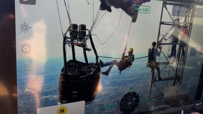 Os socorristas usaram várias cordas de 90 metros para resgatar os passageiros da cesta do balão de ar quente com segurança. Assista abaixo: