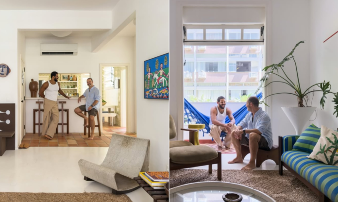 “Quando compramos, os pisos do apartamento eram umas cerâmicas horrorosas, aleatórias. Estava descaracterizado. A gente que foi atrás das lajotas, dos tacos e ladrilhos. E teve o piso que pintei de branco, porque amo. Traz essa ideia de praia, e a manutenção é muito fácil”, disse Maurício.