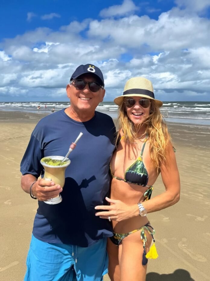 O narrador Galvão Bueno apareceu nas redes sociais nesta terça-feira, 24, em um registro ao lado da mulher, Desirée Soares, durante dias de descanso em uma praia no Rio Grande do Sul.