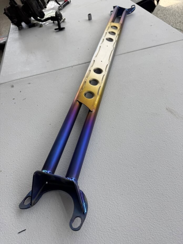 Got the rear titanium bar color matched with the front one. Its actually a bar from a Evo 7-9, but with a little massaging of the mounting holes, it fits the Evo 4-6 perfectly fine. Shout out to @toofastdrew for hooking me up with the bar!