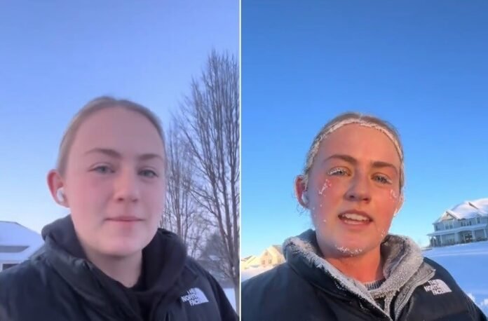 Olivia Eckels filmou o que seria uma “corrida leve” de 35 minutos sob temperatura de 8 graus negativos em Ohio (EUA).
