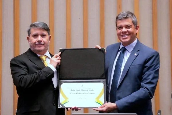 A Câmara Legislativa do Distrito Federal concedeu, na noite da última quarta-feira (11), o título de cidadão honrário de Brasília ao juiz de direito do Tribunal de Justiça do Distrito Federal (TJDFT), Manoel Franklin Fonseca Carneiro. O magistrado, conhecido por sua atuação na área do direito animal, recebeu o título das mãos do deputado distrital Daniel Donizet (MDB), autor da iniciativa da homenagem.