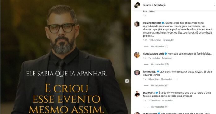 Juliano Cazarré está acostumado a polêmicas e parece não se importar. O ator de 45 anos, que esteve no ar como Jorginho em “Três Graças”, anunciou o lançamento do evento “O farol e a forja”, descrito por ele como “o maior encontro de homens do Brasil”. O encontro acontece nos dias 24, 25 e 26 de julho, em São Paulo, na Uni Italo, e promete reunir palestrantes nas áreas de liderança, empreendedorismo, paternidade, saúde masculina e vida espiritual. A reação nas redes sociais, no entanto, foi tudo menos unânime.