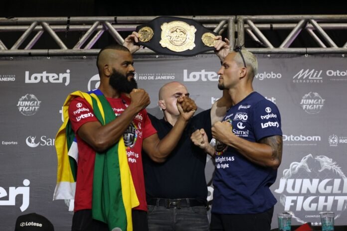O Jungle Fight 145 acontece neste sábado (28/2) no Velódromo do Parque Olímpico do Rio de Janeiro, na Zona Sudoeste, e chega com um clima de rivalidade explícita na luta principal da noite. Ernane Pimenta, representante do Rio de Janeiro, e o ex-campeão Anderson “Astro da Maldade”, de Sergipe, disputam o cinturão dos meio-médios em um confronto que também vale a condição de cabeça de chave do GP do Fight do Milhão. Os dois confirmaram a validade da luta ao baterem o peso na sexta-feira (27). O evento terá transmissão ao vivo do SporTV e do Canal Combate, a partir das 20h.