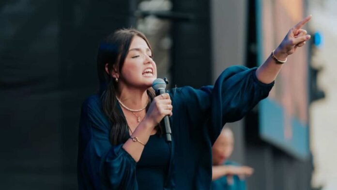 Lembra dela? Ex-atriz mirim prega para jovens em evento cristão; veja vídeo