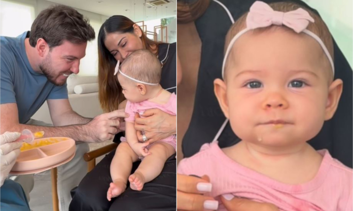 Neste domingo (12), o marido de Maíra Cardi, Thiago Nigro, usou o Instagram para registrar um marco na vida da caçula do casal: a primeira vez que Eloah experimentou alimento fora da mamadeira. Aos cinco meses de vida, a pequena foi apresentada à papinha, e o pai, coach financeiro conhecido como Primo Rico, não conteve a emoção.