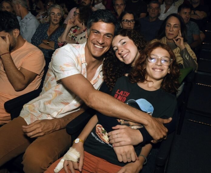 Programa de domingo em família! Mateus Solano levou os filhos Flora, de 15 anos, e Benjamin, de 10, para conferir a estreia carioca de “Dona Lola”, comédia solo de Marcelo Médici, que abriu temporada neste domingo (12) no Teatro dos 4, no Shopping da Gávea. O ator da Globo foi um dos rostos conhecidos a marcar presença na sessão de estreia do espetáculo. No ano passado, o ator anunciou o fim do casamento de 17 anos com Paula Braun.