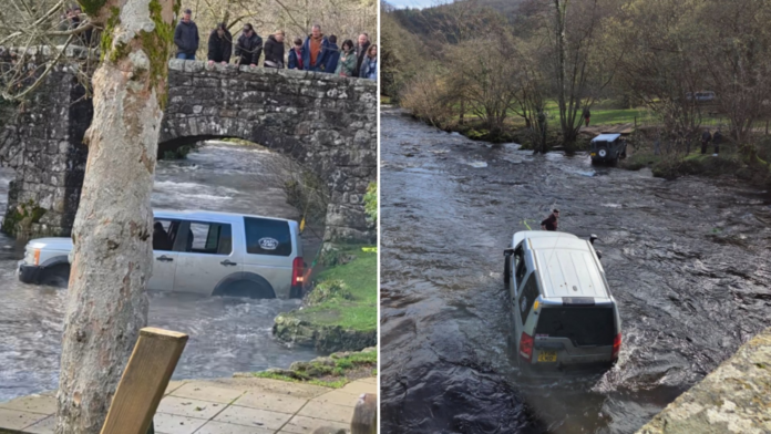 Um motorista se recusou a usar uma ponte na cidade de Exter (Inglaterra) e se colocou numa grande furada. Acreditando que o carro 4×4 com um “snorkel” instalado daria conta de atravessar o rio Teign, o homem afundou o próprio carro e teve que ser retirado do local com ajuda externa.