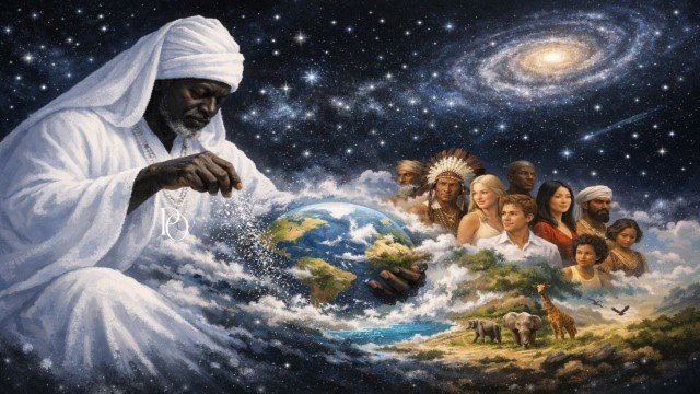 Olódùmarè criou o universo e confiou a Oxalá a tarefa de moldar a Terra e dar origem aos seus habitantes. Por essa missão sagrada, Oxalá tornou-se o pai de todos os seres. Não há separação diante dele, pois todos compartilham a mesma origem.