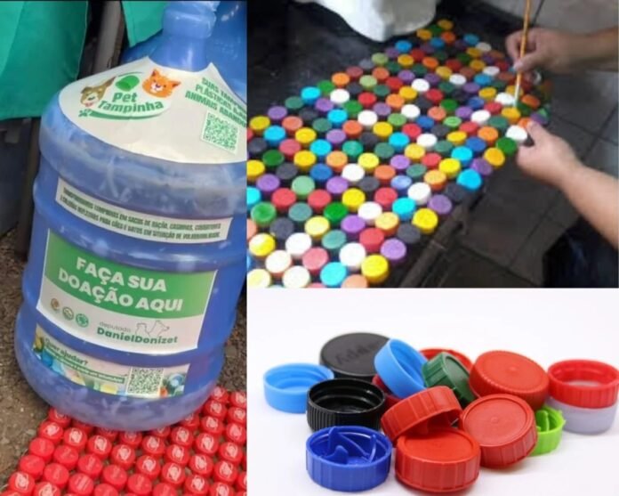 Nas oficinas, as tampinhas são reaproveitadas na produção de tapetes e brinquedos utilizados em feiras de adoção e ações de bem-estar animal. A parte destinada à reciclagem gera recursos que ajudam a manter iniciativas como distribuição de ração e apoio a animais resgatados.