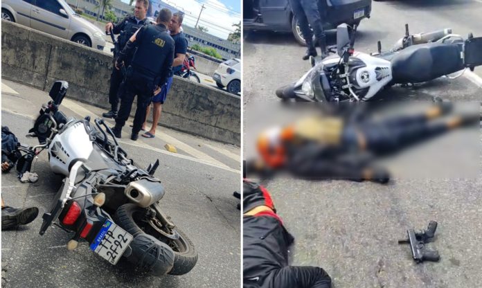 Um policial militar de folga reagiu a um assalto e matou dois suspeitos nesta quinta-feira. O caso aconteceu na Avenida Brasil, na altura da Penha, na Zona Norte do Rio. Os dois homens foram atingidos por disparos feitos pelo PM e morreram no local. O caso aconteceu no fim da manhã.