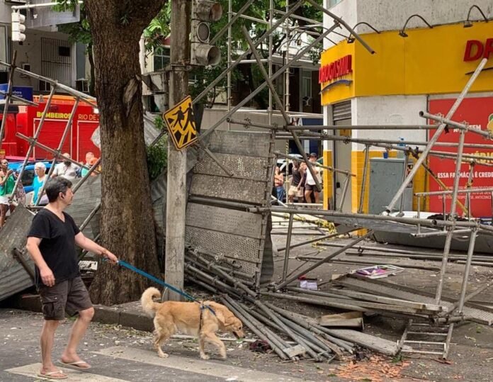 Uma ambulante morreu e outras duas pessoas ficaram feridas na queda de um andaime na esquina da Avenida Nossa Senhora de Copacabana com Rua Constante Ramos, em Copacabana, Zona Sul do Rio, na manhã deste sábado (7). Os bombeiros estão no local.