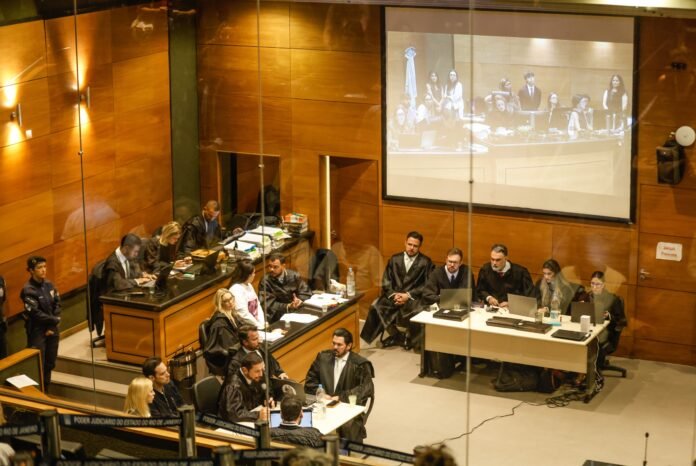Com entrada restrita (era preciso ter um cartão de cadastro em mãos até para ir ao banheiro) e proibição do uso de celulares, o II Tribunal do Júri — no prédito do Tribunal de Justiça do Rio, no Centro da capital fluminense — abriu as portas para parentes dos réus (Dr. Jairinho e Monique Medeiros) e da assistência de acusação (Leniel Borel), assim como curiosos e apoiadores. Separadas do plenário, que fica no andar debaixo, por vidros, essas pessoas reagiram a tudo que aconteceu nas cerca de três horas de sessão que julgaria o homicídio do menino Henry Borel. Por conta do abandono da defesa de Jairinho, o julgamento acabou adiado para 25 de maio.