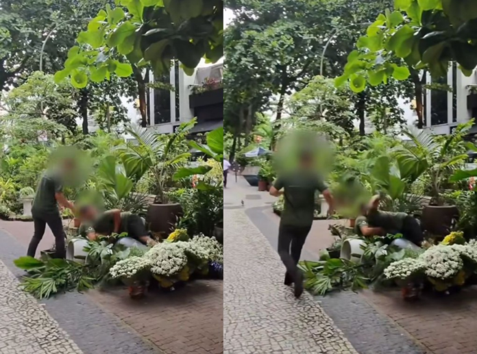 “Contextualizando: esse vídeo foi captado enquanto eu gravava um vídeo paralelo ao caos. No meio da gravação, 2 funcionários do local começaram um ‘fight’ do absoluto nada, causando entretenimento e traumas 😂🫂 aquele clássico ‘se eu contasse, ninguém acreditaria’, mas eu sem querer gravei!”.