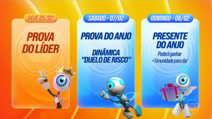 Na sexta, um “sincerinho”, como chamou o apresentador, os brothers e sisters responderão a pergunta: “Quem você gostaria de enfrentar em um paredão?”. As respostas serão usadas depois da prova do anjo, na dinâmica inédita que acontecerá na transmissão ao vivo do programa, chamada “duelo de risco”.