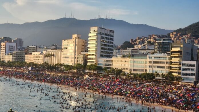 O último sábado de 2025 foi de tempo estável no Rio, como tem sido nos últimos dias. Com poucas nuvens e sem chuva, as praias da cidade ficaram lotadas. A temperatura máxima, de 35,5 graus, foi registrada ao meio-dia, na estação meteorológica do Instituto Nacional de Meteorologia (Inmet) na Vila Militar, Zona Oeste. E a previsão é de que o calor continue nos próximos dias, mas com a chuva também podendo se fazer presente.