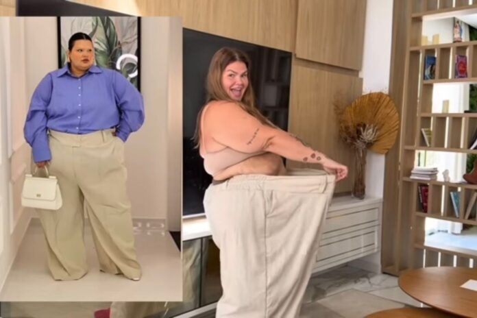 Thais Carla prova roupas que usava antes de perder 85kg: 'Tirei uma pessoa de mim'