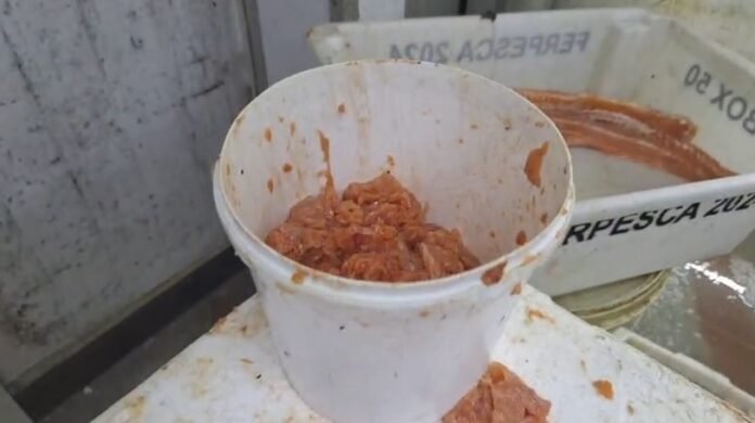 Na distribuidora, que funcionava no número 108 da Rua José Moreira Pequeno, foram encontrados peixes como salmão, linguado e tilápia. Eles estavam em caixas de isopor com rotulagem indicando datas de vencimentos já expiradas há mais de dez dias. Uma das embalagens apresentava a data de 26 de janeiro de 2026. Outros produtos venceram nesta segunda-feira.