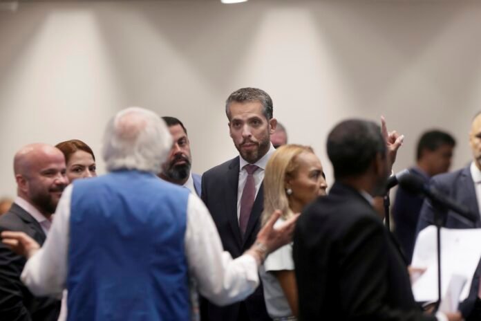 Em votação relâmpago, a Assembleia Legislativa do Rio aprovou ontem o substitutivo que estabelece as regras de uma eventual eleição indireta para governador e vice-governador. O projeto foi analisado pela Comissão de Constituição e Justiça (CCJ) das 11h às 13h30. Dos sete deputados do colegiado, apenas um foi contrário ao texto. À tarde, em plenário, após alguma discussão, a sessão extraordinária foi mais rápida, das 16h às 18h: todos foram a favor, exceto a bancada do PSOL, com cinco parlamentares, que se absteve. Agora, cabe ao governador Cláudio Castro — que deve deixar o Palácio Guanabara até abril para concorrer ao Senado — sancionar ou não a proposta.