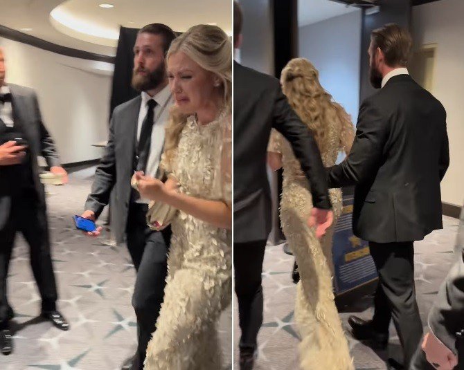 Erika Kirk — viúva líder conservador assassinado Charlie Kirk, assassinado no ano passado — estava visivelmente abalada e em lágrimas ao ser retirada às pressas do Jantar dos Correspondentes da Casa Branca, quando um atirador abriu fogo do lado de fora do salão de baile na noite de sábado.